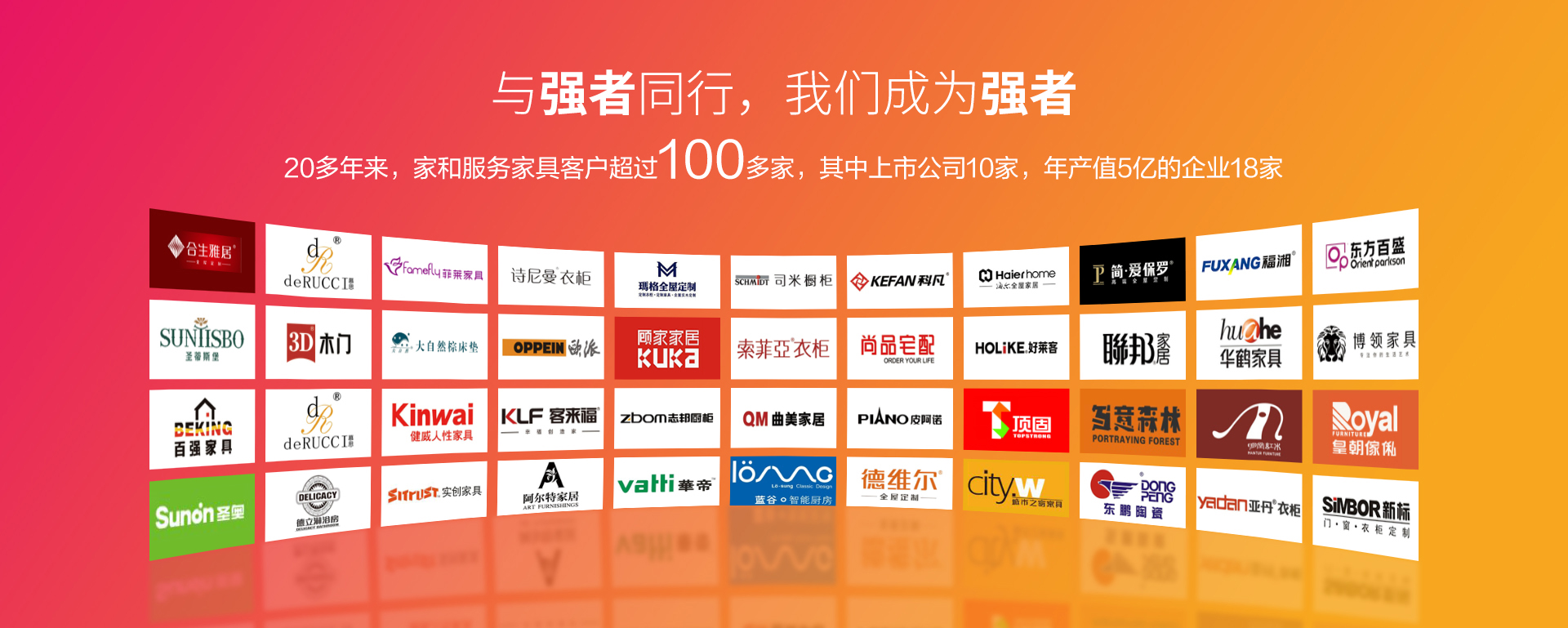 專注大家居行業(yè)多年,與業(yè)內(nèi)歐派、尚品宅配、索菲亞等眾多優(yōu)勢品牌結(jié)成戰(zhàn)略合作伙伴關系。